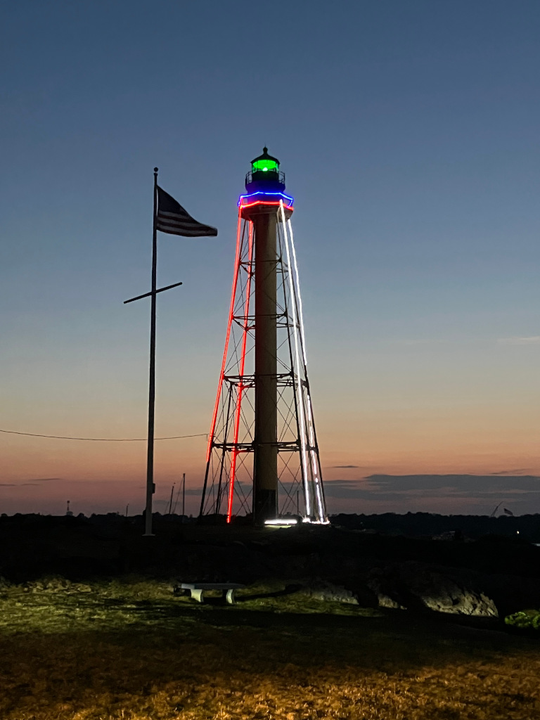 The temperature remained in the low 90s until we “turned the corner” into mid-coast Maine, and the southerly wind was cooled by open water. We stopped for lunch at a small park just east of Bath (after being unable to find parking in Bath), and continued up Route 1.