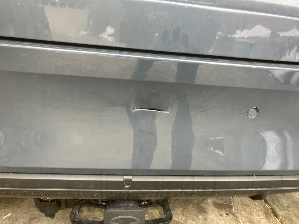 Some of you may see where this is going. For those that don't, the missing piece of information is that we had one wheel up on a leveling block. And when it came off the block, the trailer jumped forward and the leading edge of the coupler punched a hole in the bumper. Did I mention that the car was barely two months old at this point? I cursed my stupidity, and resolved to leave the hole in the bumper as a reminder not to do that again … but later discovered that it had also cut the wiring for the blind spot detector, which meant a two-week stay in the repair shop.